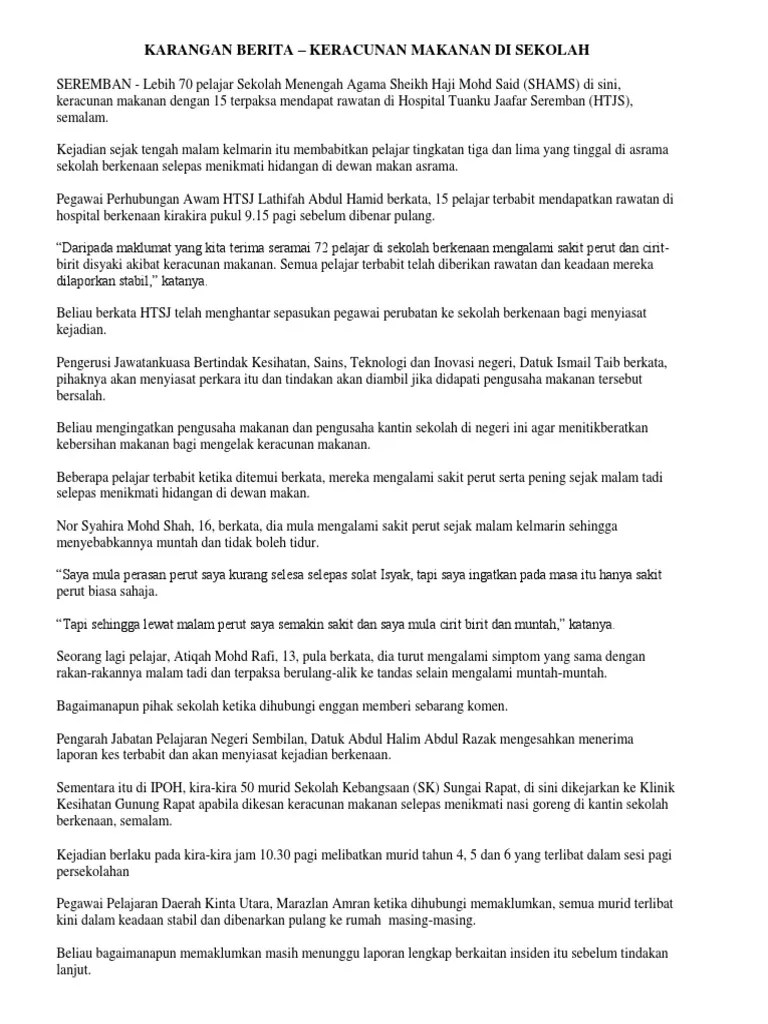 Contoh Karangan Berita Sekolah Menengah / Contoh Karangan Berita Sekolah Menengah